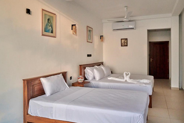 Prime Location: KINGS BAY Beach Resort in Galle offers beachfront access with Bonavista Beach just yards away. Galle Harbor lies less than 0.6 mi from the hotel, while Unawatuna Railway Station is 1.1 mi distant. Koggala Airport is 6.8 mi away. Exceptional Facilities: Guests enjoy a terrace, restaurant, bar, and free WiFi. Additional amenities include a paid airport shuttle service, 24-hour front desk, electric vehicle charging station, family rooms, and room service. Comfortable Accommodations: Rooms feature sea views, air-conditioning, balconies, private bathrooms with baths, hairdryers, work desks, free toiletries, showers, and wardrobes. Breakfast options include continental, full English/Irish, vegetarian, vegan, halal, and Asian. Nearby Attractions: Galle Fort is 2 mi away, while Dutch Church Galle and Galle Light House are 2.1 mi from the hotel. Scuba diving is available in the surroundings.